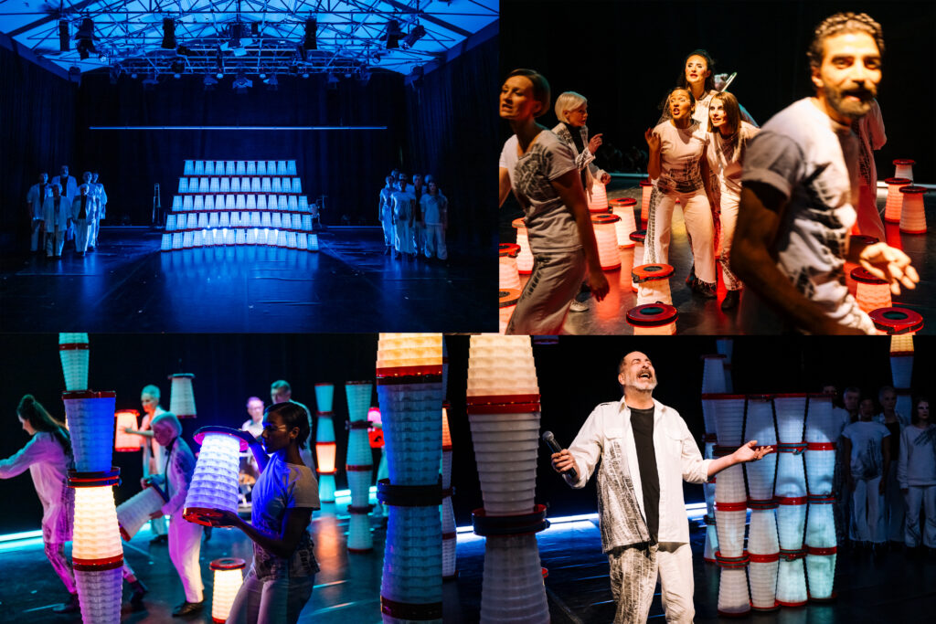 Aufführungen der neuen VolXbühnen/A.TONAL Theater Produktion HYPOCRITES • SOLO FÜR EINEN SCHAUSPIELER UND EINEN CHOR in Mülheim und Köln, Musik: Peter Eisold & Max Wehner