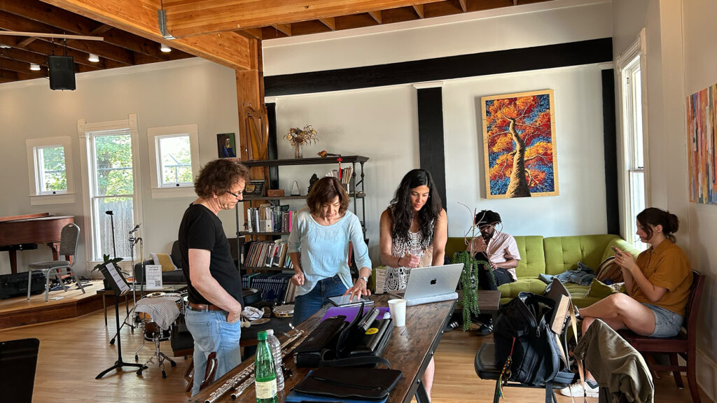 Arbeit an: Projekt mit dem E-MEX Ensemble.
