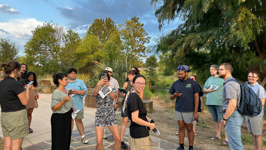 Der interaktive Audiorundgang nimmt alle Menschen ab 7 Jahren mit auf eine spannende Reise in die Zukunft. Eine App leitet die Teilnehmer*innen auf ihrem Weg durch den Westfalenpark. Ausgestattet mit Reiseausrüstung und einem Reisetagebuch sind alle Reisenden eingeladen zu forschen und zu entdecken. Sie passieren Zeitschranken, reisen mühelos durch die Zeiten hin und her und entdecken dabei mögliche und unmögliche Zukünfte. Wie werden wir Menschen in Zukunft wohnen? Wie werden wir uns ernähren, wie uns fortbewegen? Wird es zu viel oder zu wenig Wasser geben? Wie wird sich das Klima ände
