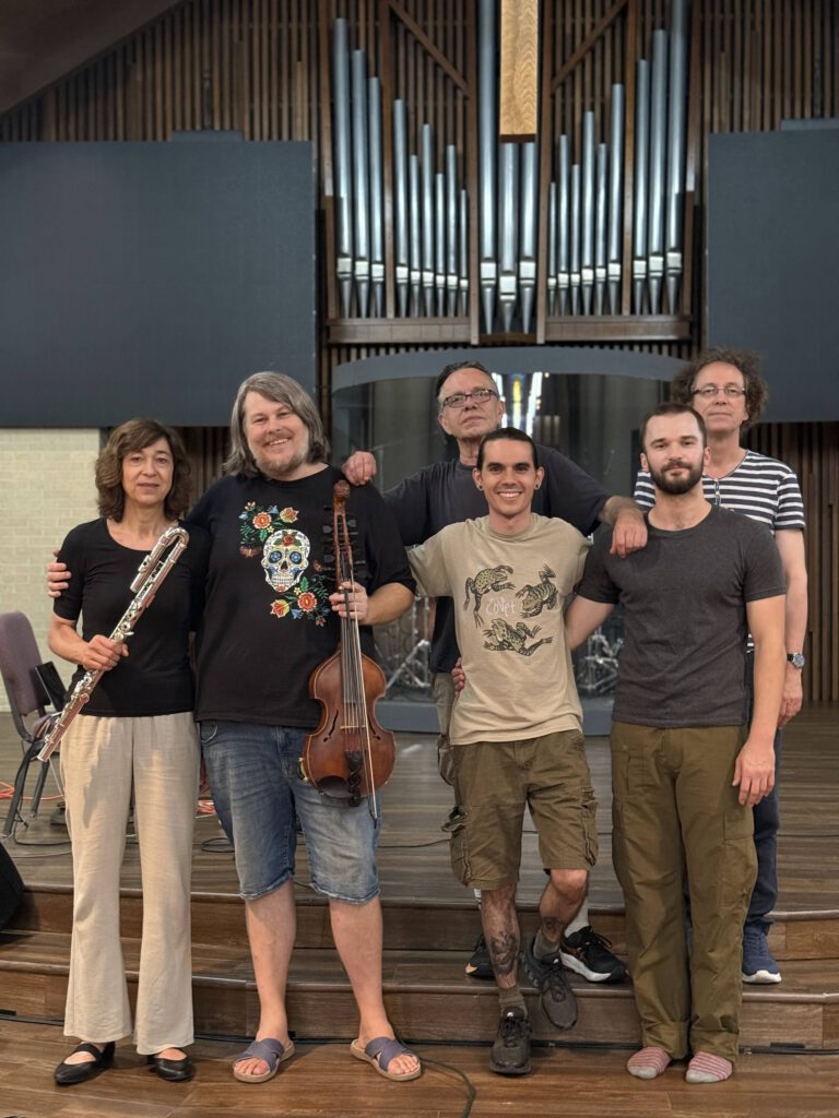 Evelin Degen/Flutes – Matthias Geuting/Keys – Carter Williams/Viola d’Amore – Peter Eisold/Percussion/Electronics . Dancers/Actors: Lara Pilloni / Antonia Koluiartseva / Mateusz Bogdanowicz / Florian Entenfellner – and the stunning immersive room-visuals and light-art of: