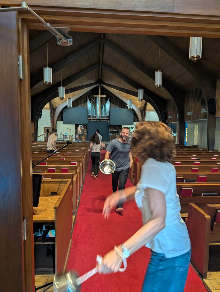 Performance auf den Klangskulpturen von Thomas Rother